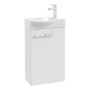 Signe är det perfekta valet för dig som söker en kompakt och stilren lösning för mindre badrum. Detta praktiska kommodpaket inkluderar både ett tvättställsskåp och ett keramiskt tvättställ. Tvättställsskåpet är tillverkat av mattlackerad spånskiva i en elegant svart eller vit finish som motverkar fingeravtryck. Tvättställsskåpet levereras med en skåplucka utrustad med mjukstängningssystem, vilket tillför till kommodens praktiska designspråk. Tvättställsblandare medföljer ej.