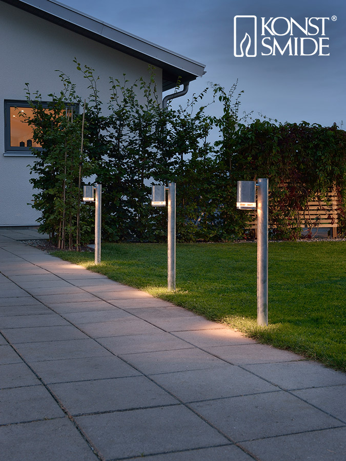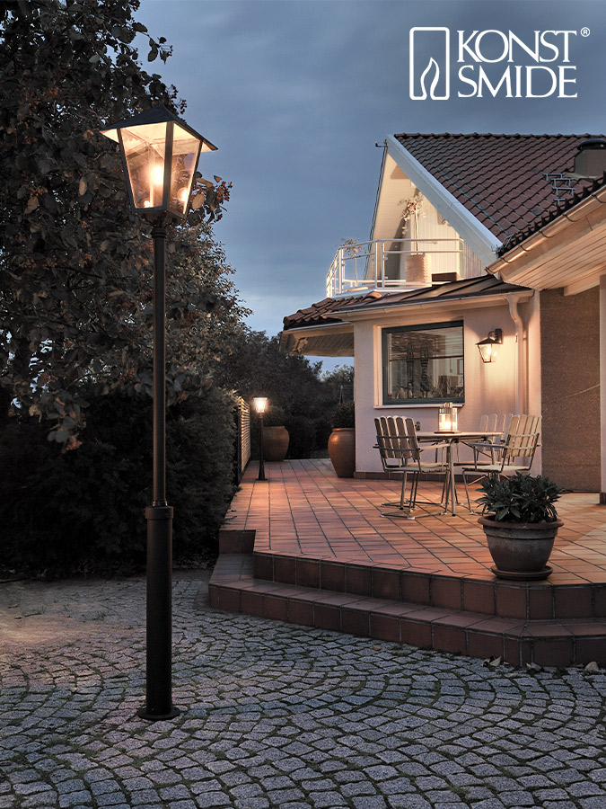 Konstsmides olika produktserier gör det enkelt för dig att välja fasadbelysning, pollare och lyktstolpar som harmoniserar med varandra.