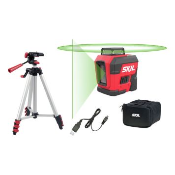 Krysslaser 1961 från Skil är en mångsidig krysslaser som är perfekt för laserprojicering inomhus. Den projicerar exakta horisontella, vertikala eller korsade laserlinjer. Den gröna laserteknologin syns extra bra. Denna krysslaser har ett integrerat litiumjonbatteri som enkelt laddas via den inbyggda micro usb porten. Laserlinjerna nivelleras automatiskt med hjälp av självnivelleringsläget. När du arbetar på ett hobbyprojekt som inte kräver en nivellerad projicering kan du enkelt byta till det manuella nivelleringsläget. Detta gör att du kan projicera diagonala linjer, exempelvis när du ska montera räcken. Tack vare den stora räckvidden på upp till 30 meter, en kompakt design med mjukt grepp samt ett enkelt användargränssnitt erbjuder lasermätaren en fantastisk lösning för dina nivelleringsjobb i 360 grader!