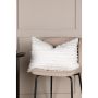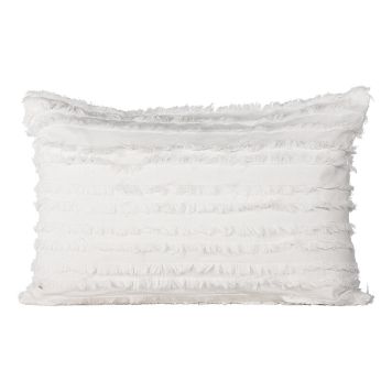 Detta kuddfodral är tillverkat i slitstarkt bomullstyg som garanterar långvarig användning. Med sina dekorativa fransar skapar fodralet ett elegant linjärt mönster som ger en sofistikerad touch till din inredning. Den snövita nyansen gör det enkelt att matcha med andra färger och stilar i ditt hem. Förnya ditt rum genom att kombinera detta kuddfodral med andra färger och storlekar för att skapa ett varierande och modemedvetet blickfång!