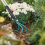 För skonsam luckring och luftning. Lämplig i stenig eller hård jord och där växter står tätt. Lämpligt skaft 130 cm.