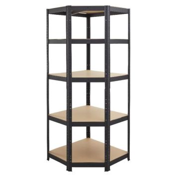 Skapa ordning i garaget eller förrådet med denna hörnhylla från Regalux. Denna kraftiga och stabila hylla i metall erbjuder fem hyllplan, perfekt för att förvara större föremål som verktyg. Med sin robusta konstruktion passar den utmärkt i förrådet, garaget, källaren, verkstaden eller på arbetsplatsen. Varje hyllplan klarar en maxvikt på 175 kilogram, vilket ger dig gott om förvaringsutrymme. För extra stabilitet kan du enkelt fästa hyllan i väggen!