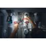 Lampan har en praktisk bärrem i hårdgummi och är kompatibel med alla Bosch 14,4V och 18V litiumbatterier. Batteri och laddare ingår ej