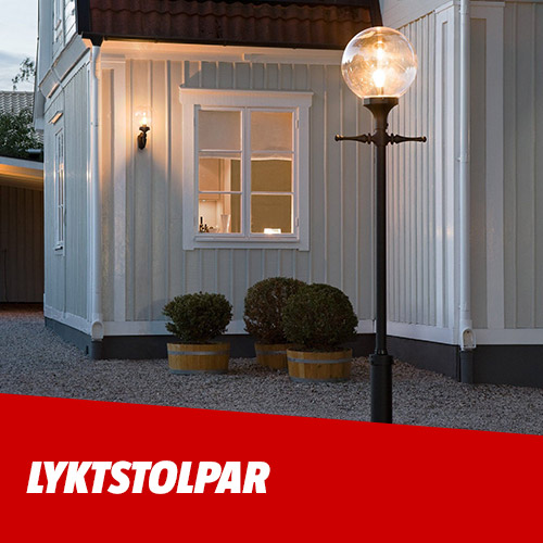 Lyktstolpar ger en traditionell och tidlös känsla utomhus. De passar särskilt bra på större tomter, vid uppfarter, innergårdar och öppna ytor där ett högre och vidare ljus behövs. Med både enkla och mer dekorativa modeller är det lätt att hitta en lyktstolpe som matchar husets stil.