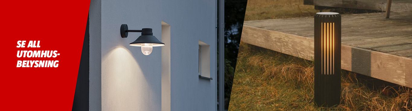 Utomhusbelysning skapar trygghet, trivsel och karaktär runt huset. Rätt lampor lyfter fasaden, gör entrén mer välkomnande, skapar stämning på altanen och gör trädgårdsgångar lättare att använda även efter mörkrets inbrott. Hos BAUHAUS finns ett brett sortiment av utomhuslampor för alla behov – från fasadbelysning och markspotlights till pollare, lyktstolpar och solcellslampor. Oavsett om du vill skapa dekorativa ljuseffekter, öka säkerheten eller njuta av mysiga kvällar utomhus finns lösningar för varje stil och miljö.