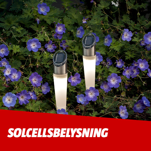 Solcellsbelysning är ett smart och flexibelt alternativ som inte kräver eldragning. Lamporna laddas via solen och tänds automatiskt i skymningen. De passar perfekt i rabatter, längs gångar, vid altaner eller som dekorativa inslag runt träd och buskar. Med solcellsbelysning kan du skapa stämningsfullt ljus utan sladdar och installation.