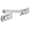 Detta robusta grindbeslag kan användas både till vänster och höger utan modifiering, tack vare den dubbelbärande bulten i fästet. Ett hänglås kan hängas genom Lochim-fästet tillsammans med den medföljande öglan för att säkra grinden mot obehörig åtkomst. En speciell fördel är att öglan skjuts under en av plattorna och monteras tillsammans med den, vilket gör den säker mot att skruvas loss. Ytan på detta grindbeslag är blåförzinkad och skyddar mot väderpåverkan.