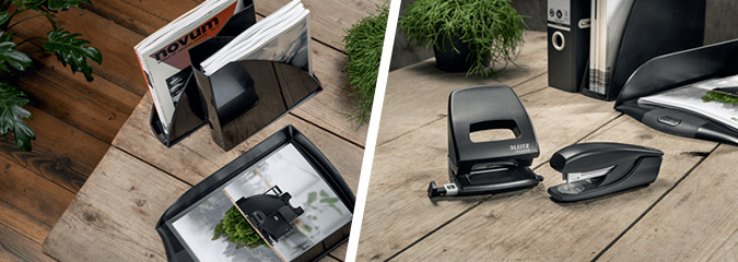 Till exempel är alla produkter i Leitz Recycle-sortimentet klimatneutrala, 100 % återvinningsbara och tillverkade av en hög andel återvunnet material.