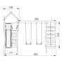 I Jungle Gym Cabin lektornet får de mindre äventyrare skydd från sandstormar och monsunvindar under det sluttande taket. I botten av lektornet finns en sandlåda som är placerad i skuggan, där vackra sandslott kan ta form. Stegen är utrustad med halkfria stegpinnar och tornet kommer med en fin grön rutschkana. Utöver det så levereras denna komplett med tillhörande klättermodul med klätternät och två stycken härliga gungor.