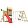 I Jungle Gym Resort lektornet får de mindre äventyrare skydd från sandstormar och monsunvindar under det sluttande taket. Det roliga lektornet erbjuder både lek under tak och under öppen himmel tack vare sin balkong med gott om utrymme och är enkel att bygga ut med extra moduler om man är redo för ännu fler äventyr. I botten av lektornet finns en sandlåda som är placerad i skuggan, samt en mini-market för massor utav lek i sommarsolen. Stegen är utrustad med halkfria stegpinnar och lektornet kommer med en fin röd rutschkana. Utöver det så levereras denna komplett med tillhörande klättermodul med klätternät och två stycken härliga gungor.