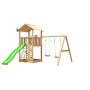 I Jungle Gym Sierra lektornet får de mindre äventyrare skydd från sandstormar och monsunvindar under det sluttande taket. Lektornet är perfekt för en relativt liten trädgård och är enkel att bygga ut med extra moduler om man är redo för ännu fler äventyr. I botten av lektornet finns en sandlåda som är placerad i skuggan, där vackra sandslott kan ta form. Stegen är utrustad med halkfria stegpinnar och tornet kommer med en fin grön rutschkana. Utöver det så levereras denna komplett med tillhörande gungmodul och två stycken härliga gungor.