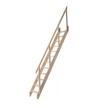Kiel är en enkel lofttrappa som tar väldigt lite utrymme. Trappans steg, vagnstycken och räcke är tillverkat av massiv obehandlad gran och allt är FSC certifierade. Med den obehandlade ytan har du exempelvis möjlighet att måla trappan själv efter dina önskemål. Lofttrappan från Dolle kan med fördel användas även i mindre rum eftersom steghöjden innebär att trappan kräver lite utrymme. Den har 13 steg med vilplanet och är 57,2 centimeter bred inklusive räcke. Den maximala takhöjden är 283,5 centimeter och har en max belastning på 250 kilo. Du får även bra komfort med ett stegdjup på 14,2 centimeter. Det medföljande räcket kan montera på båda sidor av trappan vilket gör trappan mer säker och flexibel.