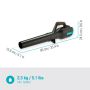 Slipp krångliga sladdare och kablar med denna batteridrivna lövblås från Gardena. Du kan enkelt städa trädgården på ett flexibelt, snabbt och effektivt sätt. Blåsaren imponerar inte bara med sin smarta och funktionella design utan framför allt med sina anmärkningsvärt kraftfulla blåsprestanda. Oavsett om det gäller löv, mindre grenar eller gräsrester blåser PowerJet bort dem snabbt och kraftfullt. Tack vare dess innovativa design och höga luftflödeshastighet ser din trädgård välskött och prydlig ut på nolltid. Blåsarens fantastiska prestanda med en maximal luftvolym på 7,9 m³ per minut, imponerar och gör att du kan städa en yta på upp till 400 m². Blåsaren är dessutom så välbalanserad att du inte känner av någon trötthet i handleder och armar. Detta förstärks ytterligare av produktens utmärkta ergonomi. En tydlig LED-display på blåsen visar batteriets aktuella laddnivå. Det medföljande anslutningsbara precisionsmunstycket gör att du kan arbeta ännu mer exakt i trädgårdens svåråtkomliga hörn. Den kraftfulla, kompakta och praktiska batteridrivna blåsaren är därför idealisk för en mängd olika städjobb.