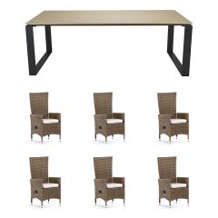 Stommen i aluminium gör bordet både stabilt och lätt att hantera. Materialet är anpassat för utomhusbruk och står emot fukt och väderpåverkan, vilket bidrar till lång hållbarhet. Bordsskivan i nonwood ger ett träliknande utseende men kräver minimalt med underhåll jämfört med traditionella träbord. Det gör detta trädgårdsbord till ett bra alternativ för dig som vill ha utemöbler med enkel skötsel.