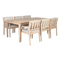 Möbeln är tillverkad i acacia. För att behålla möbelns ursprungliga utseende så bör teakolja användas några gånger per säsong. Du kan även tvätta av med vanligt vatten. För att ta bort fläckar, så rekommenderar vi att använda ett finkornigt sandpapper. Flytta ej möbeln direkt från utomhus till ett uppvärmt utrymme, då fuktighetsskillnaden kan få möbeln att spricka. När du inte använder din möbelgrupp rekommenderar vi dig att använda ett möbelskydd. Vid förvaring av din möbel är det bäst om den står i ett torrt och ventilerat rum.
