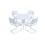 Detta matbord med matchande stolar från Sunfun är det perfekta tillskottet till din uteplats. Med en robust ram av stål och en bordsskiva samt stolsrygg och stolsits i nonwood-material kombinerar möblerna både hållbarhet och estetik. Utemöblerna är designade för att stå emot väder och vind, vilket gör dem idealiska för utomhusbruk. Bordets runda form med en diameter på 110 centimeter ger gott om plats för trevliga middagar och sociala sammankomster. Med sin moderna vita färg smälter möbelsetet enkelt in i olika miljöer och ger din uteplats ett fräscht och inbjudande utseende.