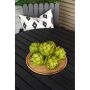 Materialet är framtaget för att användas utomhus då det är väderbeständigt och står emot både fukt och mögel. Aintwood är därför ett optimalt material för utomhusmöbler. Undvik skador på bordet genom att använda underlägg och låta bli att placera varma föremål direkt på ytan.