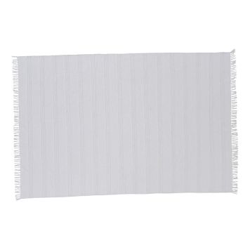 En handvävd matta i en vacker benvit nyans. Med sina flätade detaljer och dekorativa fransar på korts...