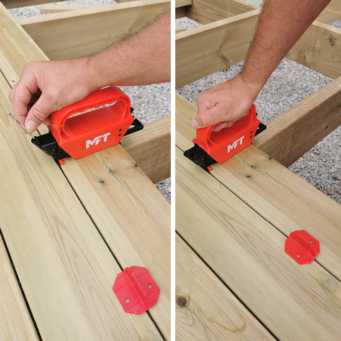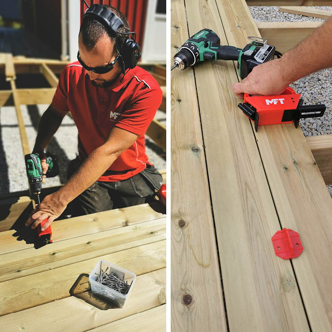 Den hör verkligen sommaren till! Med MFT:s verktyg för dolt montage av trall får du en trall som är slät – utan sprickor, stickor eller skruvskallar som syns.