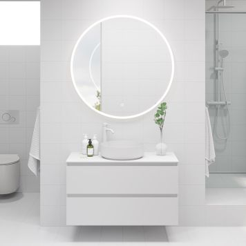 Välj mellan olika modeller av speglar och spegelskåp. Speglar med belysning kommer med sensorstyrd belysning. (gäller ej Stone). Spegelskåp är utrustad med dubbelsidiga speglar med 165 graders gångjärn, LED-belysning över, under samt i skåpet och 230 V uttag med strömbrytare.