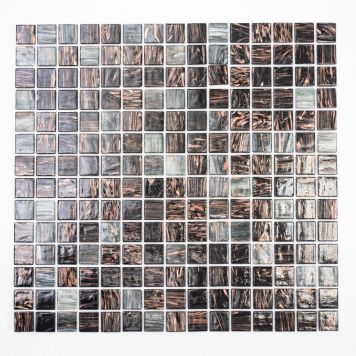 Traditionell glasmosaik av homogen glasmassa i snyggt och modernt utförande. Mosaiken sitter på delningsbara ark vilket underlättar montering och ger möjligheter att skapa egna bårder och dekorbitar.