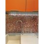 Traditionell glasmosaik av homogen glasmassa i snyggt och modernt utförande. Mosaiken sitter på delningsbara ark vilket underlättar montering och ger möjligheter att skapa egna bårder och dekorbitar.