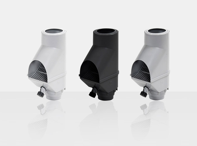 Automatiskt självrensande från löv, mindre kvistar etc, via speciellt utformat plastgaller. Gallret kan lätt tas bort alt, bytas ut om så önskas.