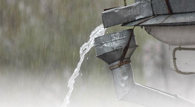 När det regnar fylls magasinet upp och vattnet kommer att sippra ner i marken genom botten på dagvattenkassetten. Hur snabbt och hur mycket vattnet rinner undan beror på jordens beskaffenhet. Kom även ihåg att montera lövrensare på stuprören så inte löv och annat skräp kan komma in i magasinet.