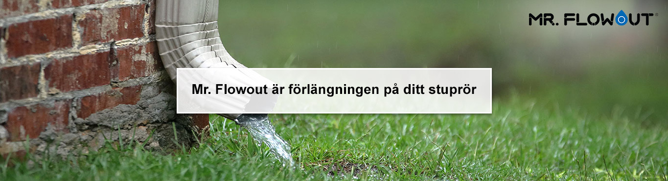 Helt enkelt en praktisk produkt för avrinning av dagvatten som ersätter den vanliga utkastaren och samtidigt skyddar ditt hus från möjliga vattenskador. Mr. Flowout är något du snabbt kan koppla till valfritt stuprör, den är ett tillbehör som är till stor hjälp.