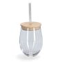 Det här glaset är perfekt för att slurpa upp uppfriskande sommardrycker. Det har ett fint bambulock och medföljade sugrör i miljövänligt glas. Kapaciteten är cirka 500 milliliter.