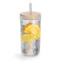 Det här glaset är perfekt för att slurpa upp uppfriskande sommardrycker. Det har ett fint bambulock och medföljade sugrör i miljövänligt glas. Kapaciteten är cirka 580 milliliter.
