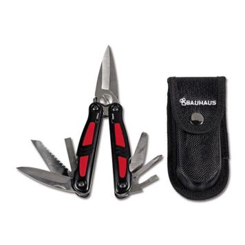 En kniv med verktygen du kan tänkas behöva vid fisket eller på campingen. Utrustad med fil, skruvmejsel, liten och stor kniv, såg och tång. Det medföljer även en bältesficka för smidigare förvaring.