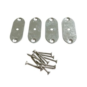 Sätt en skruv i det mittersta hålet och montera fästet på sidramen av staketet så att de två hålen lämnas synliga. De andra beslaget monteras direkt på stolpen. Används mellan staket och 90x90mm stolpar.