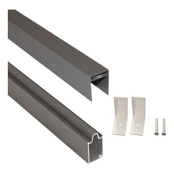 Använd ett set per modul. Setet innehåller en topp och en bottenskena samt 2 stycken L-beslag och självgängande skruvar. Bottenskenan används för att mäta avståndet mellan stolparna till staketet både upptill och nedtill så att rätt avstånd mellan staketstolparna uppnås. Den översta skenan placeras på den översta brädan som en snygg finish på staketet.