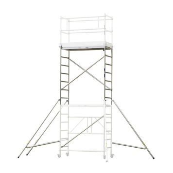 Denna rullställning i aluminium är den perfekta lösningen för dina byggprojekt, oavsett om du arbetar inomhus eller utomhus. Med en plattform och låsbara hjul, erbjuder denna ställning både stabilitet och rörlighet. Rullställning 282 standard är särskilt användbar i trånga utrymmen. För att nå en plattformshöjd på 5,8 meter behöver du kombinera modulerna A, B, C och D.