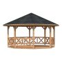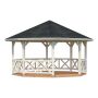 Rymlig öppen paviljong Betty är det perfekta inslaget för ännu mer trivsel i din trädgård. Med sin rejäla konstruktion och klassiska uttryck är Betty ett perfekt sätt att samla nära och kära. Betty fungerar som en praktisk uteplats som du enkelt kan placera på din tomt. Den öppna paviljongen har ett robust tak och en generös yta som gör det möjligt att samla familj och vänner. Paviljongen ringas in av ett klassiskt kryssräcke och blir en komplett härlig uteplats där taket skyddar från för mycket sol.