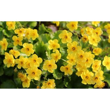 Waldsteinia är en mattbildande marktäckare med glänsande vintergrönt bladverk. Blommar rikligt me...