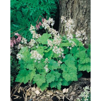 Vita skira blommor på stänglar vilket följs av friska gröna blad som gärna sprider ut sig. Spetsmössan är en tålig perenn för fuktiga förhållanden. Marktäckaren Spetsmössa skapar en typiskt woodland känsla så plantera gärna nära högre buskar eller tillsammans med rhododendron där perennen får växa fram och på hösten skifta till vackra gulröda höstfärger.