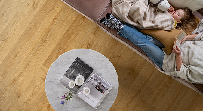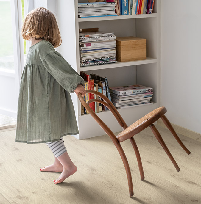 Laminatgolv tenderar att låta mer på grund av den hårda ytan och lätta vikten. De kan också kännas lite ihåliga under foten. Jämfört med lyxig vinyl som redan är utrustad med flera ljudabsorberande lager, kan du däremot ytterligare optimera laminatets ljuddämpande kvaliteter med Pergos SilentWalk-underlägg.