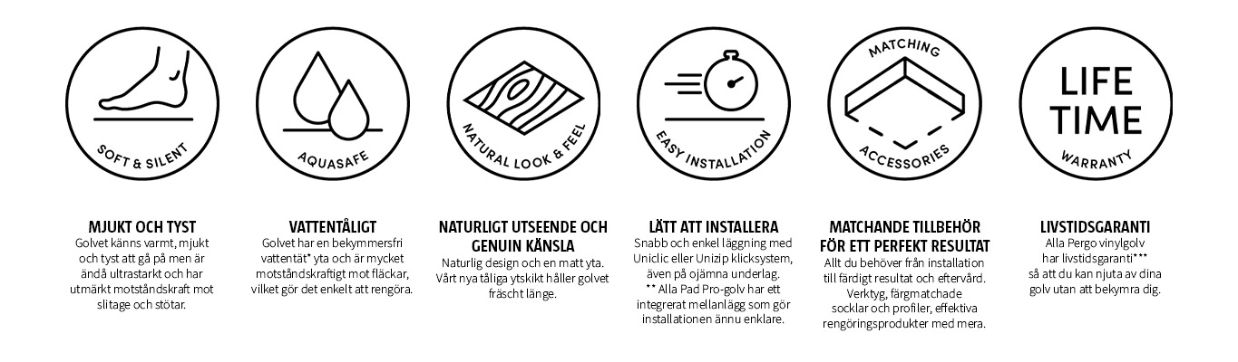 Pergo sätter standarden när det gäller vinylgolv av hög prestanda. Välj golven för den verklighetstrogna strukturen, snygga designen och levande detaljerna. Notera den vattentäta hållbarheten, prestandan och mjuka, varma känslan.