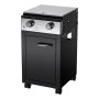 Med den här planchagrillen från Kingstone kan du avnjuta en enkel och smakfull grillning i din egen trädgård eller på din balkong. Grillen har en mängd imponerande funktioner så som den inbyggda blå LED-belysningen som gör grillning enkel och bekväm under mörka kvällar. Den är utrustad med automatisk tändning som tillåter dig att starta grillen snabbt och enkelt utan krångel. De två brännarna tillåter dig att justera värmen efter dina egna behov och önskemål. Grillgallret är tillverkat av det hållbara materialet gjutjärn som ger en jämn värmefördelning och en perfekt stekyta. Med en generös grillyta om 45 x 45 centimeter har du gott om utrymme för grillning till både stora och små sällskap. Tack vare planchagrillens kompakta design får den enkelt plats på din balkong eller mindre uteplats. Samla familj och vänner och njut av läckra grillrätter tillsammans. Regulator medföljer ej.