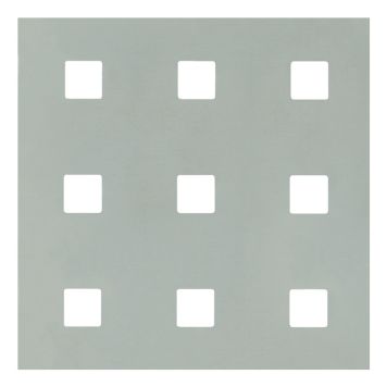 Aluminiumskiva fyrkantiga hål. Ytan är också anodiserad vilket förstärker materialets korrisionsskydd.
