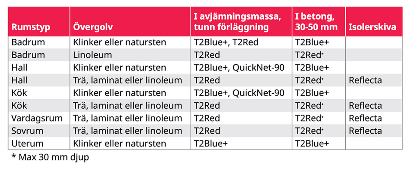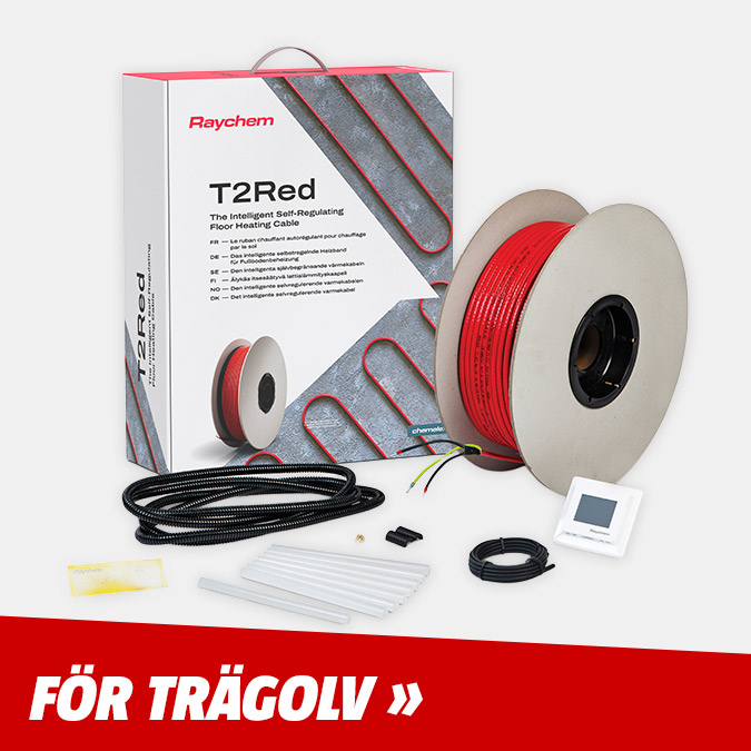 T2Red självbegränsande värmekabel. Rekommenderas av ledande trägolvstillverkare.