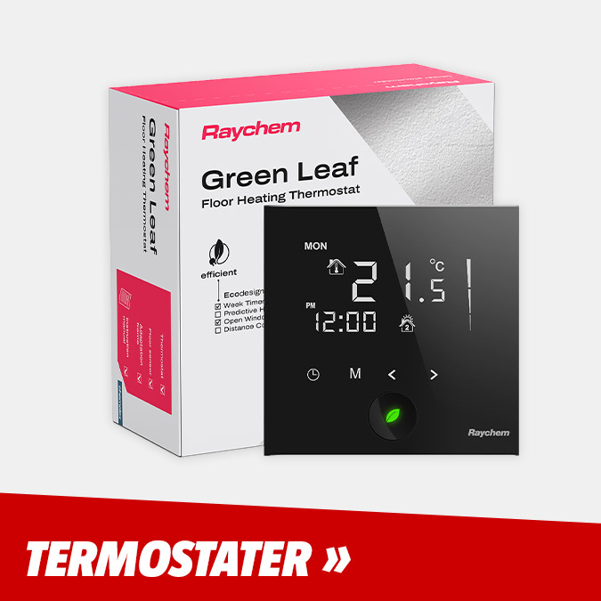 Raychem golvvärmeprodukter är enkla att installera och testade enligt europeiska säkerhetskrav. Med effektiv och smart styrning optimeras energiförbrukningen i golvvärmesystemet. En digital och programmerbar Raychem golvvärmetermostat ger upp till 55 procent energibesparing.