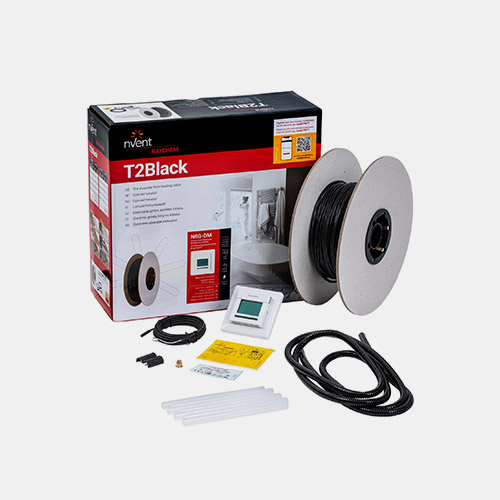 T2Black är en extra tunn golvvärmekabel, som finns i två effektvarianter.