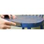 Appliceras med pensel i ett tjockt jämnt skikt. Låt verka tills färgen har rest sig, från ca. en timme upp till 12 timmar. Skrapa av den lösa färgen med en spackelspade, detta ska ske innan Sanera Färg torkar in i ytan eller avdunstar helt. Ytan kan täckas med plastfolie så att avdunstning/ uttorkning förhindras. Tjocka färgskikt kan behöva flera behandlingar, upprepa tills önskat resultat uppnås. Rester av tunna färgskikt, t.ex. grundfärg, kan i de flesta fall tvättas bort i nästa steg. Ytorna tvättas sedan med Sanera Sot & Olja med hjälp av REDO Stålborste eller Skurborste. Alla rester av Sanera Färg måste tvättas bort, vidhäftningen för nya färgskikt kan annars försämras. Verktyg rengörs i varmt vatten.