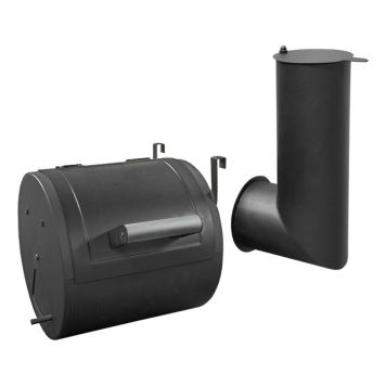 Enkel att montera av och på. Ventil i rökbehållaren och spjäll i skorstenen för reglering av syretillförseln. Emaljerat kolgaller i rökbehållaren.