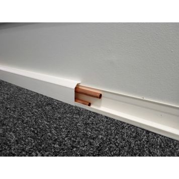 PRIMO rörsocklar är lätta att montera. Med några få delar täcker man elegant in alla värmeledningsrör utmed golvet. På utsidan är det en elegant sockel, och på insidan är det ett elegant sätt att få vattenburen värme runt i bostäder och på arbetsplatser. Och tillsammans – det nya sättet att installera vattenburen värme utan att behöva göra några ingrepp i befintliga golv, väggar eller tak.