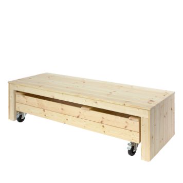 Denna mångsidiga sandlåda bänk med multilåda är den perfekta lösningen för dig som vill ha en sandlåda för barnen som även kan tas undan. Med sin praktiska design och obehandlade träfinish, erbjuder den både stil och funktionalitet. Sandlådan med hjul som enkelt kan rullas in under bänken och ställas undan när den inte används. De stora hjulen gör det enkelt att flytta lådan, även när den är full av sand och leksaker, vilket ger dig flexibilitet att förändra din utomhusmiljö efter behov. När barnen vuxit upp kan du istället använda denna som en planteringslåda eller en liten köksträdgård.