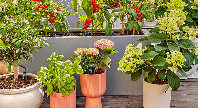 - För krukväxter kan bevattningsglober vara en enkel lösning. De släpper ut vatten långsamt och håller jorden fuktig i upp till två veckor.